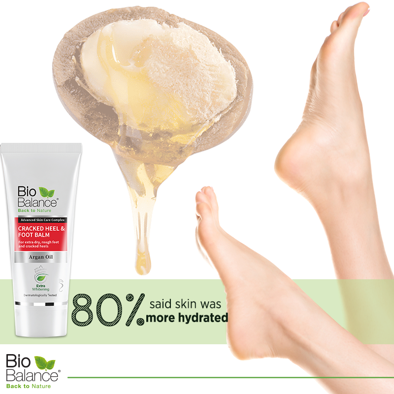 Balsamul reparator Bio Balance este special formulat pentru pielea uscata, aspra si crapata de pe calcaie, talpi, glezne, genunchi, coate sau alte zone cu tendinta de deshidratare excesiva. Imbogatit cu un complex de ingrediente active precum niacinamida, ulei de argan, unt de shea, extracte de tamaie, lemn dulce, Centella Asiatica si rozmarin, formula sa intens hidratanta si calmanta sustine regenerarea pielii si previne reaparitia crapaturilor. Rezultate clinice:• 80% au spus ca pielea a fost mai hidratata• 70% au observat repararea calcaielor crapate• 70% au declarat ca pielea arata mai moale si mai fina*Test efectuat timp de 4 saptamani, pe 30 de persoane, cu aplicare de 2 ori/zi