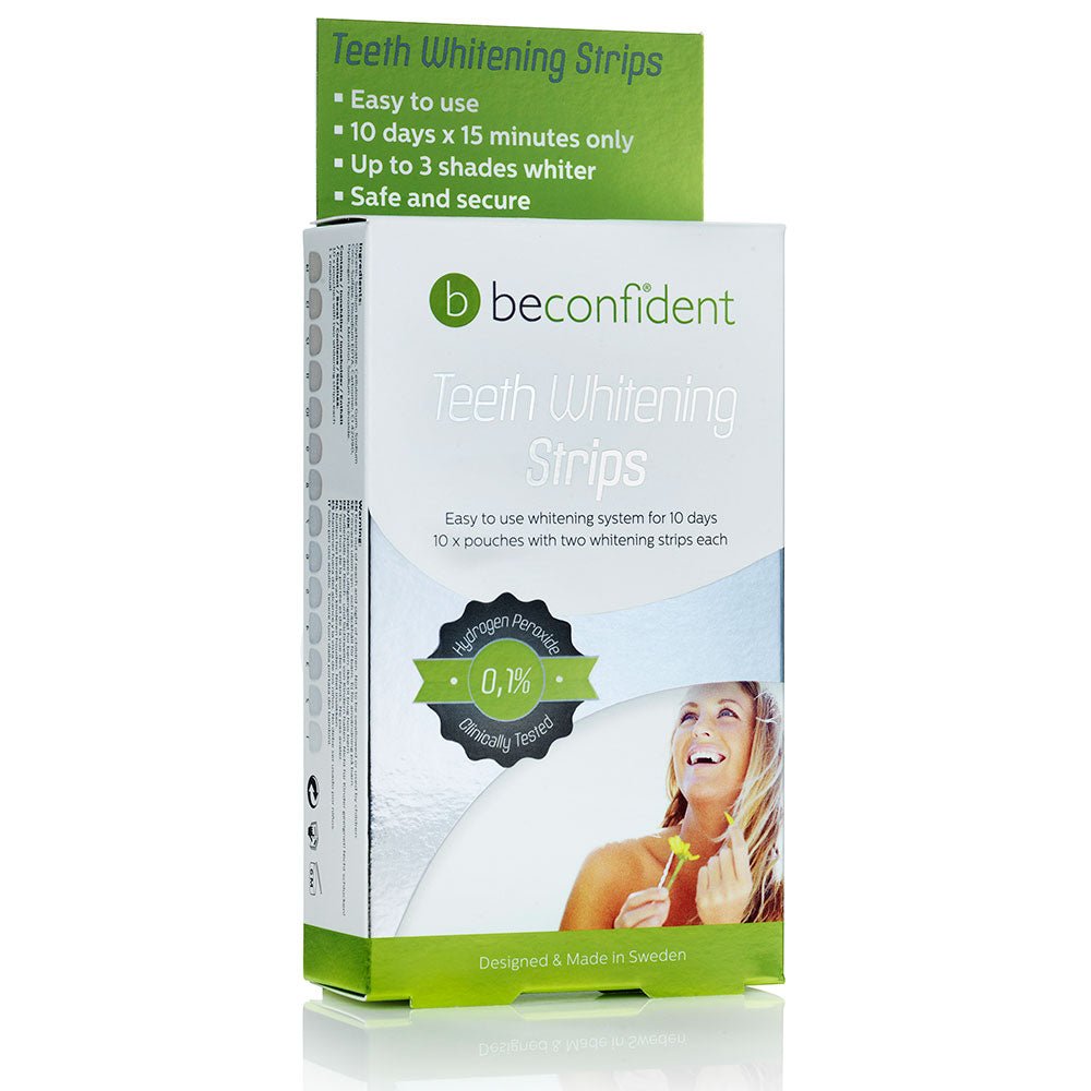 Benzile de albire a dintilor Beconfident®, create de echipa inationala Beconfident® in colaborare cu renumiti experti stomatologi, utilizeaza tehnologia inovatoare Dual-Boost X3 pentru rezultate vizibile in doar 15 minute. Setul contine: 10 bucati x 2 benzi de albire Fisa de instructiuni Pentru rezultate optime pe termen lung, va recomandam sa descarcati aplicatia Beconfident® Teeth Whitening (disponibila pe Android si iOS). Urmati instructiunile personalizate din aplicatie pentru a maximiza efectele produsului. Aplicatia Beconfident® este o componenta esentiala a acestui sistem unic de albire a dintilor. Proiectat si creat in Suedia Vezi instructiunile de utilizare aici.