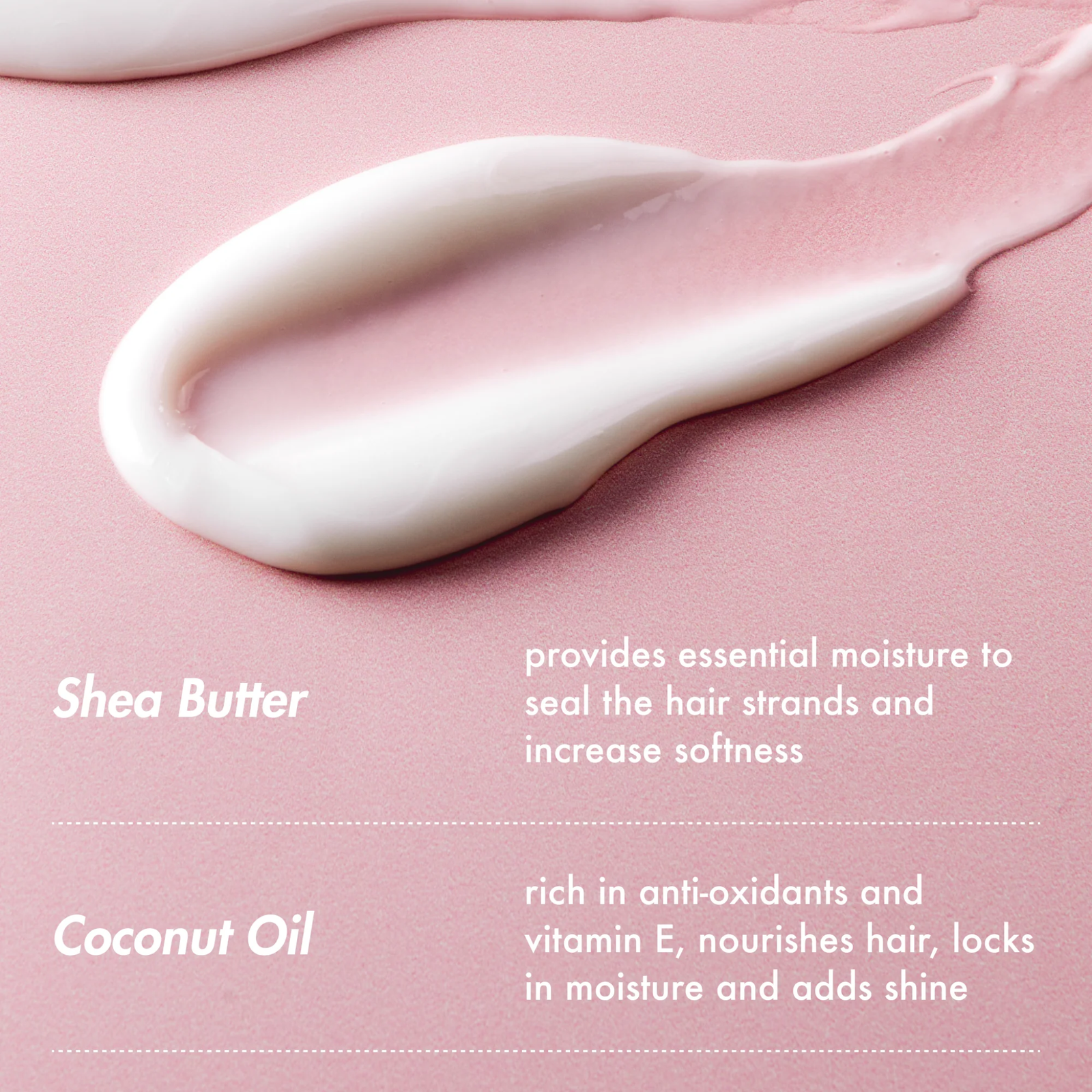 - Cocos Nucifera (ulei de cocos) – hidratează profund, netezește cuticula și redă strălucirea naturală