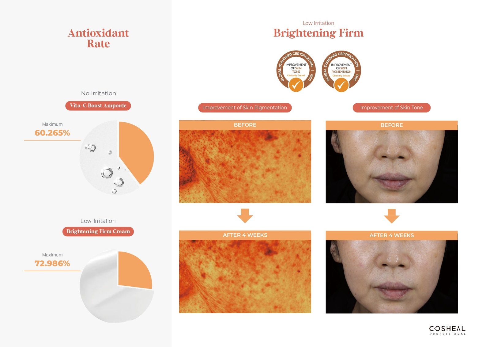 Aceasta crema antioxidanta cu vitamina C ofera stralucire naturala tenului in 14 zile*.Crema contine niacinamida si Gigawhite care imbunatateste nuanta pielii, atenueaza petele pigmentare si intareste bariera naturala de hidratare pentru a mentine pielea hidratata. – reduce pigmentarea cu 7.5%- imbunatateste aspectul tenului cu 1.21% *Conform unui test clinic pe 21 de voluntari (cu varsta intre 20-59 de ani) intre 25 august 2023 – 22 septembrie 2023 de catre Global Standard Certification Institute GCS Anti-Aging Lab Gama Cosheal Lively contine 7 extracte de plante eficiente in imbunatatirea tonului pielii si multiple vitamine si minerale care redau vitalitatea pielii. Aceasta gama se adreseaza:- persoanelor care confrunta cu imperfectiuni si pete pigmentare- pielii terne, lipsite de luminozitate si vitalitate- tenului cu textura neuniforma