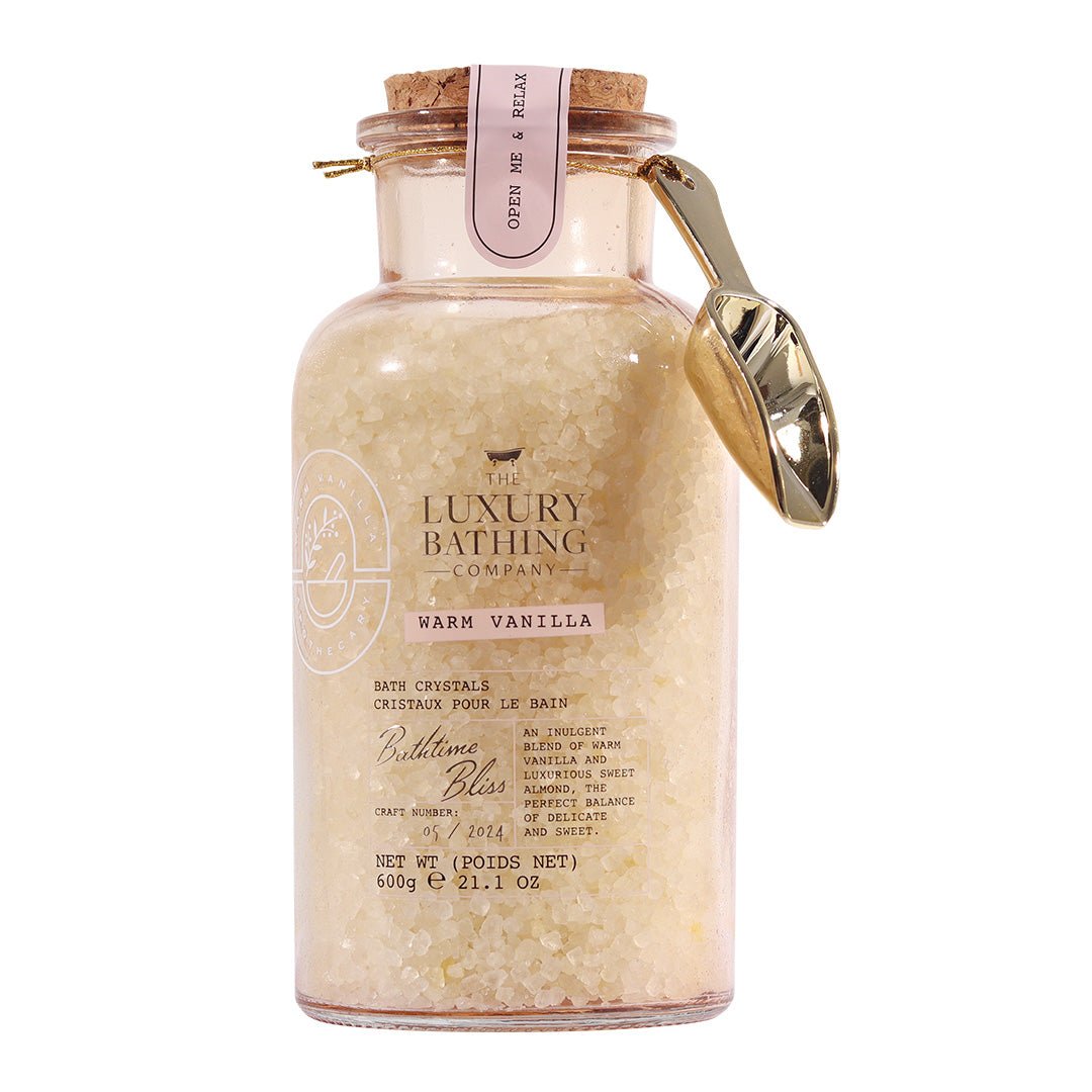 Rasfata-te cu o experienta relaxanta si parfumata folosind cristalele de baie Warm Vanilla din colectia Bathtime Bliss. Ambalate intr-un borcan elegant din sticla cu dop din pluta, aceste cristale iti transforma baia intr-un moment de liniste si confort. Aroma calda de vanilie si migdale dulci invaluie simturile si creeaza un echilibru perfect intre dulce si delicat. Fie ca le folosesti pentru tine sau le oferi in dar, cristalele Warm Vanilla aduc un strop de lux si rafinament in orice baie.