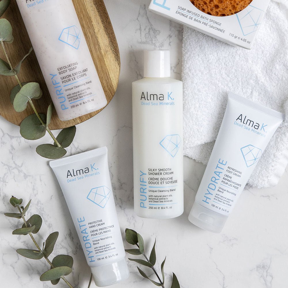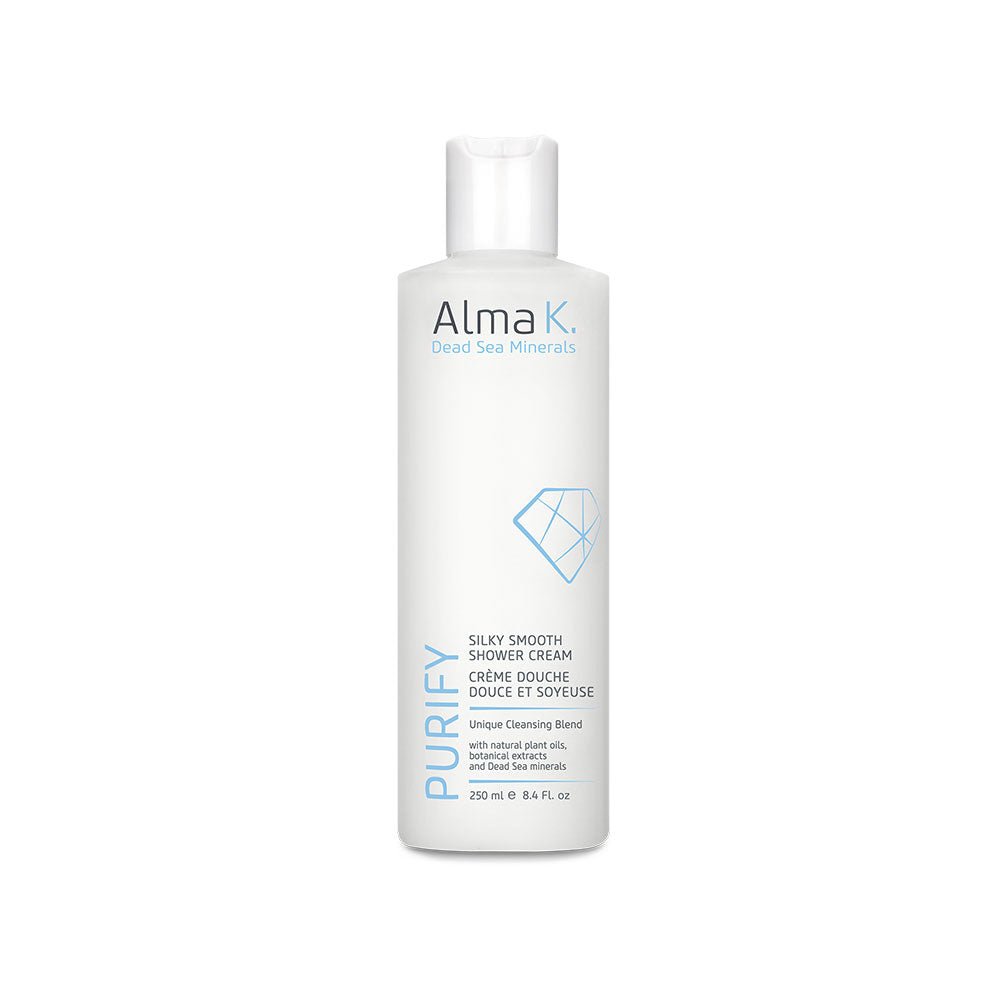 Transforma dusul zilnic intr-un ritual de ingrijire cu Gelul de Dus Cremos Silky Smooth din gama Purify de la Alma K. Formula delicata si matasoasa curata pielea cu blandete, in timp ce o hidrateaza si o hraneste in profunzime. Imbogatit cu minerale de la Marea Moarta, uleiuri vegetale pretioase (jojoba, avocado, argan, masline) si extracte calmante din musetel, ceai alb si aloe vera, acest gel de dus lasa pielea catifelata, echilibrata si revigorata.