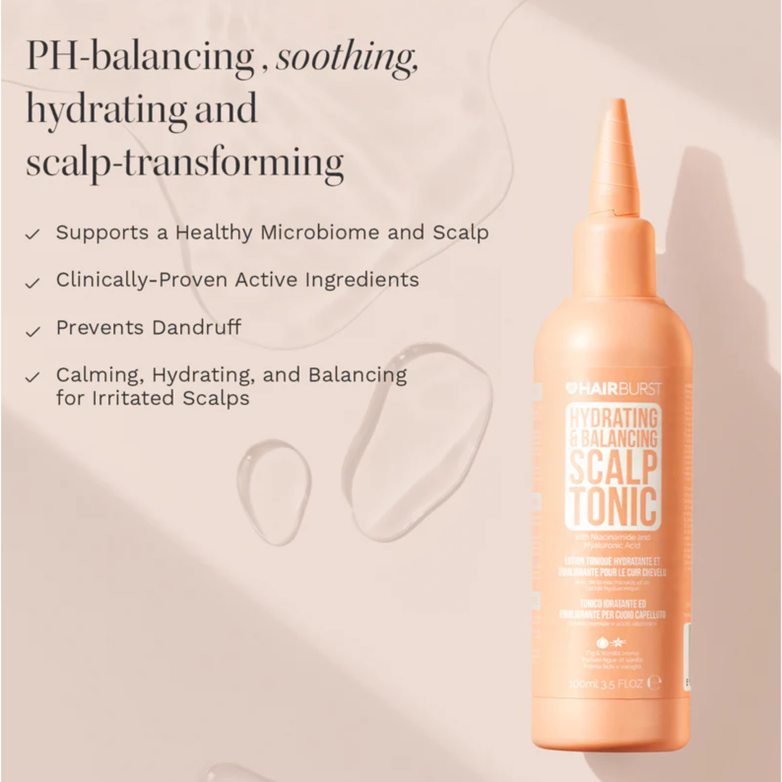Un scalp sanatos si hidratat este cheia unui par mai puternic si sanatos. Aceasta lotiune tonica cu textura usoara, non-grasa, se simte ca o reimprospatare zilnica pentru scalpul tau. Lotiunea tonica Hairburst calmeaza iritatiile, echilibreaza nivelurile de hidratare si creeaza mediul perfect pentru cresterea parului. Pur si simplu aplica direct pe scalp, maseaza si lasa-l sa-si faci magia – nu este nevoie de clatire. Spune adio uscaciunii si disconfortului si bucura-te de un scalp hranit si echilibrat, care sustine cresterea sanatoasa a parului.