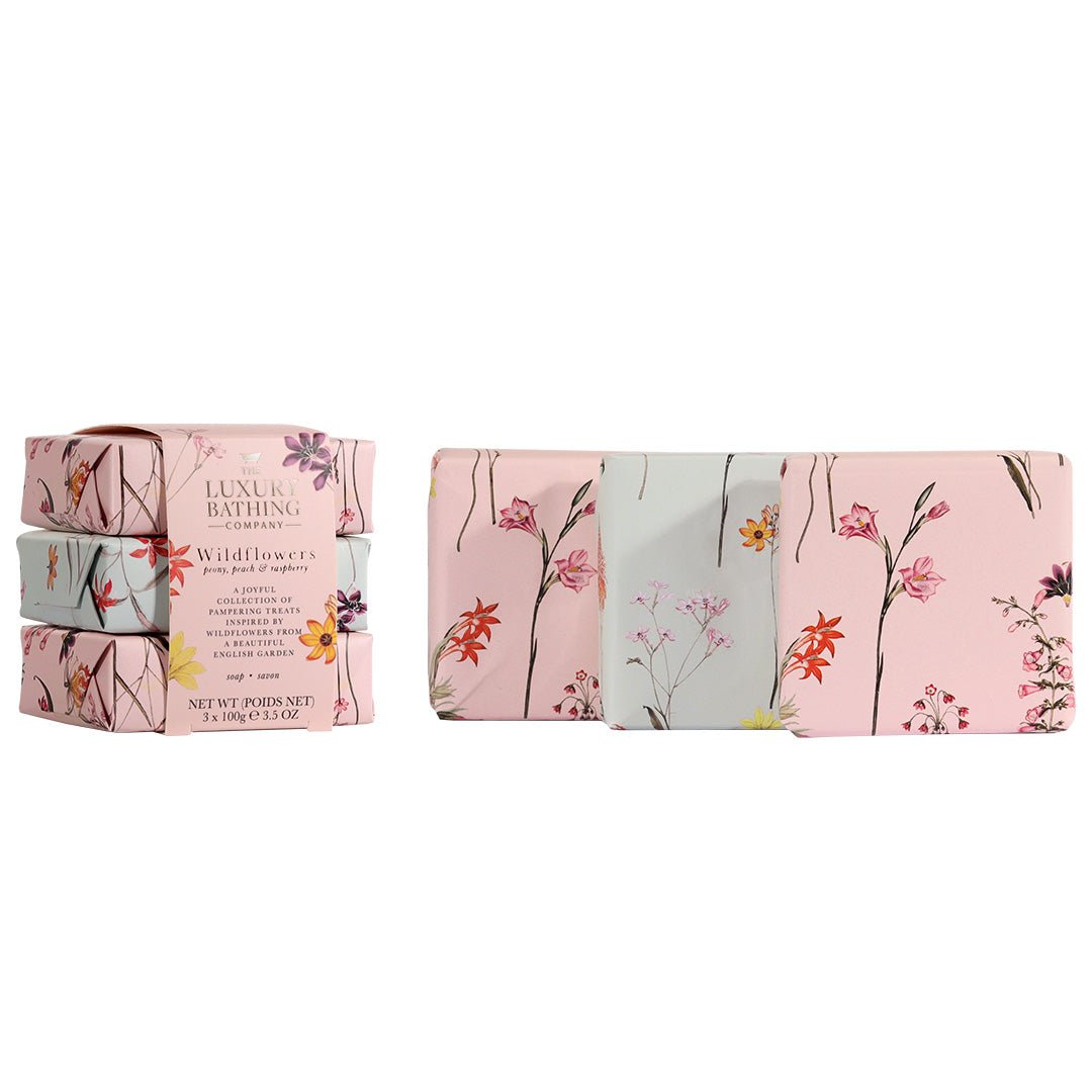 Adauga un strop de rafinament ritualului tau zilnic de ingrijire cu setul cadou Gentle Cleansing Trio – Wildflowers, Peony, Peach & Raspberry de la The Luxury Bathing Company. Aceste trei sapunuri parfumate, ambalate individual in hartie cu imprimeuri florale, iti transforma fiecare spalare a mainilor intr-un moment placut si parfumat. Inspirate de gradinile englezesti pline de flori salbatice, notele delicate de bujor, piersica si zmeura iti invaluie pielea cu un parfum proaspat si elegant. Un cadou ideal pentru orice ocazie sau pentru a-ti oferi un mic moment de rasfat. Continutul setului– 3 x Sapunuri parfumate 100 g, fiecare in ambalaj de hartie decorativa