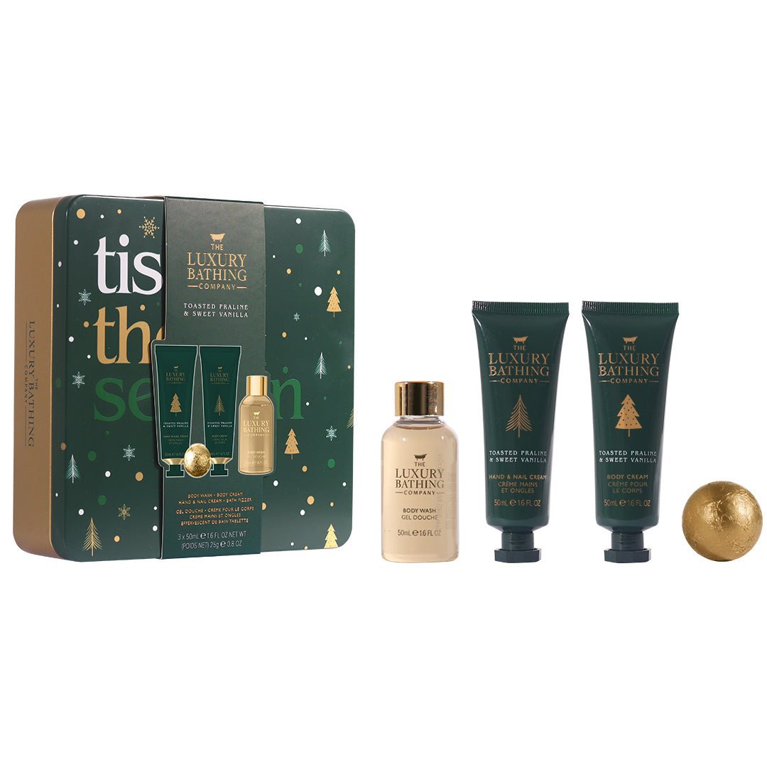 Rasfata-ti pielea si simturile cu setul cadou Tis the Season – Toasted Praline & Sweet Vanilla de la The Luxury Bathing Company. Ambalat cu grija intr-o cutie metalica reutilizabila cu design festiv, acest set transforma rutina de ingrijire intr-o experienta calda si reconfortanta, perfecta pentru sezonul sarbatorilor. Parfumul gurmand de pralina prajita si vanilie dulce te poarta intr-o atmosfera festiva, invaluitoare si placuta. Ideal de oferit cadou sau de pastrat pentru tine, pentru momente de rasfat autentic. Continutul setului:1 x 50 ml Crema Maini si Unghii1 x 50 ml Crema Corp1 x 50 ml Gel de Dus1 x 25 g Bila de Baie