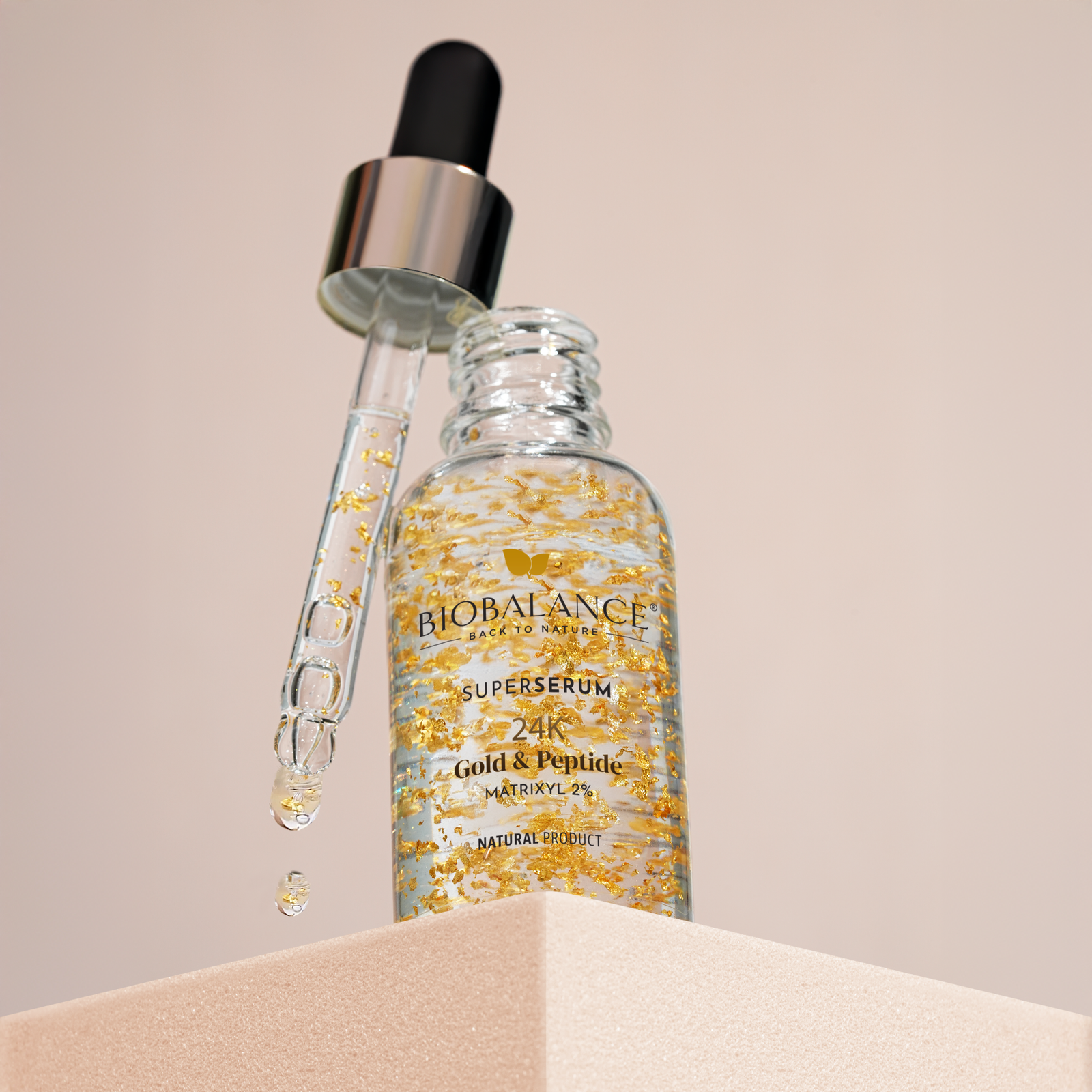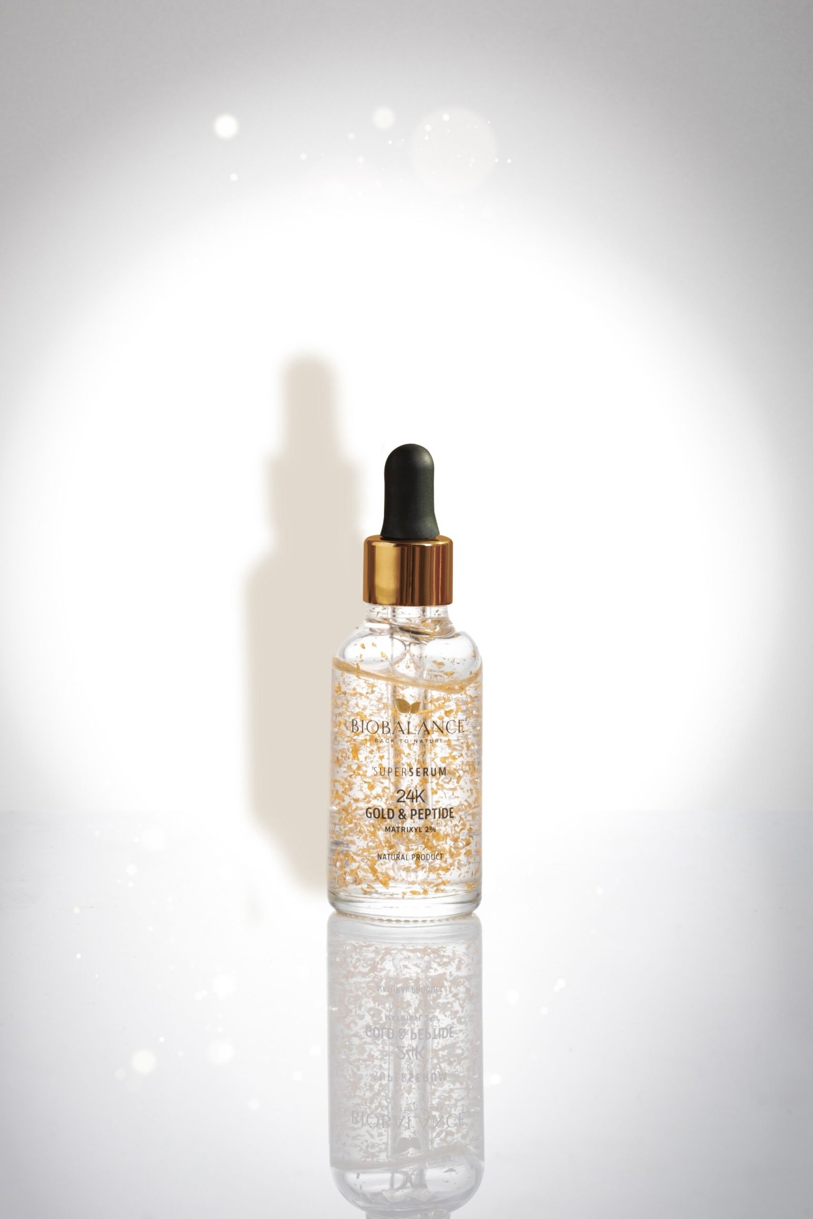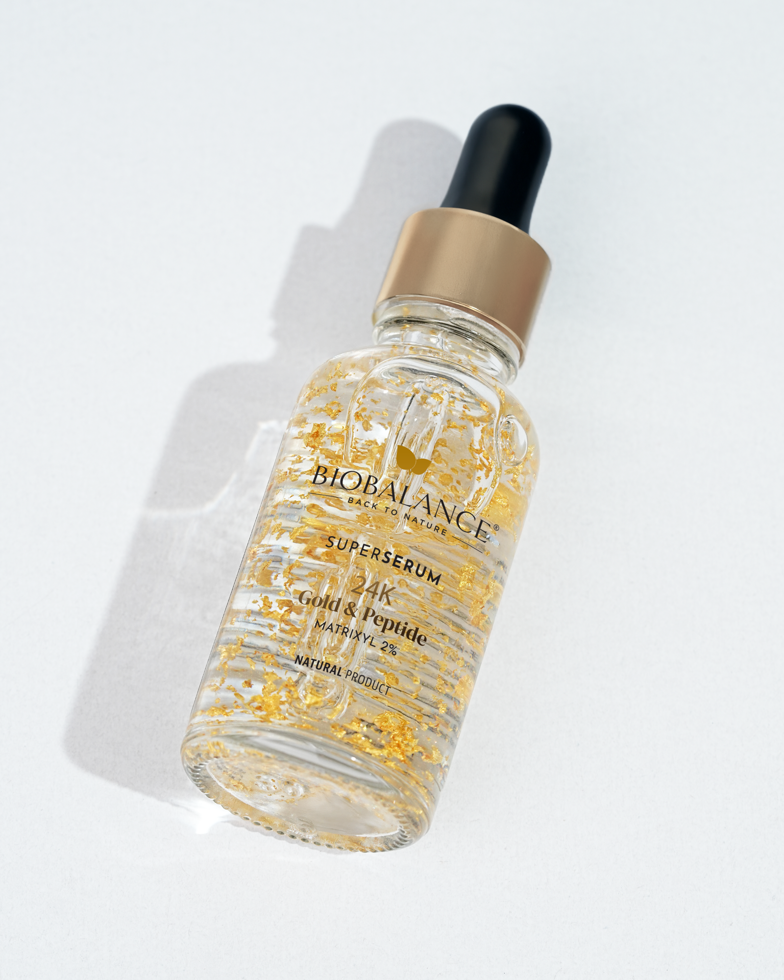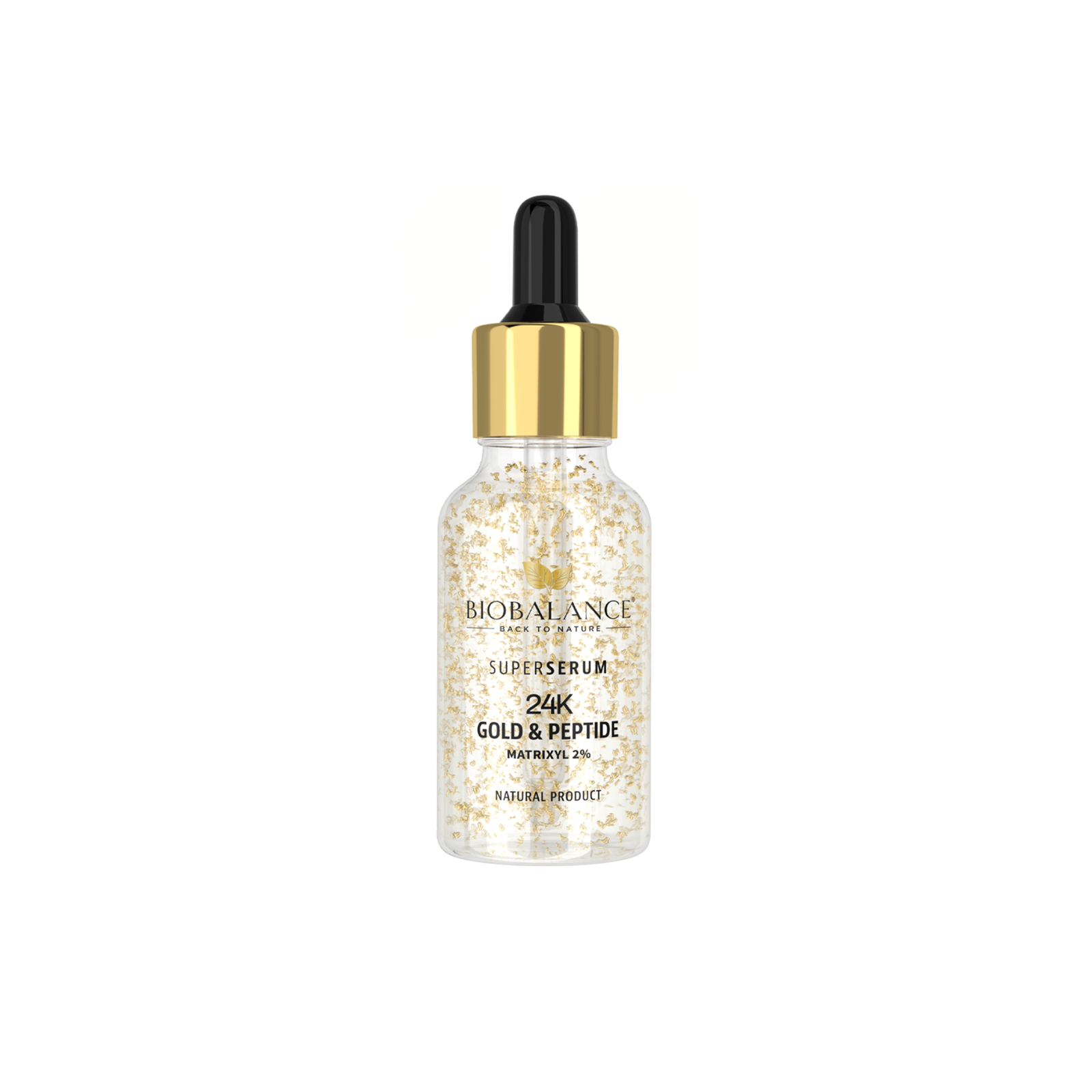 Super Serum 24K Gold & Peptide, imbogatit cu fulgi de aur si Matrixyl 2%, este special conceput pentru a trata ridurile din jurul ochilor si gurii, precum si ridurile de expresie de pe frunte si din zona T. Cu efecte vizibile inca de la prima aplicare, pielea devine mai stralucitoare si mai radianta. Studiile clinice au demonstrat ca: Imediat dupa aplicare, pielea capata un aspect vizibil mai stralucitor si radiant. Dupa 8 saptamani de utilizare, se observa o reducere de 31% a ridurilor de pe frunte si o scadere de 28,5% a ridurilor de tip „laba-gastii”. *Rezultatele sunt bazate pe teste in-vivo efectuate pe ingrediente.