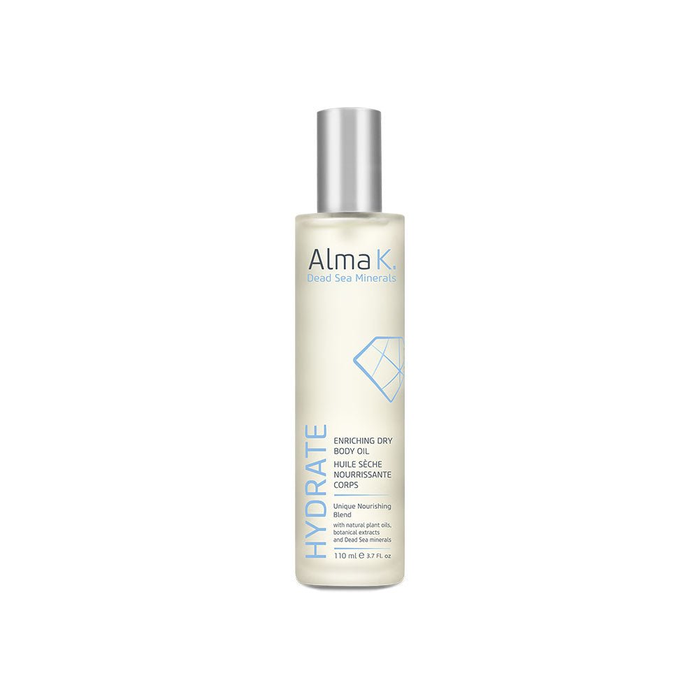 Rasfata-ti pielea cu Uleiul Uscat Hranitor pentru Corp Hydrate de la Alma K – un amestec luxuriant de uleiuri de avocado, masline, argan si migdale dulci, conceput pentru a hidrata intens si a revitaliza pielea. Imbogatit cu vitamina E si minerale de la Marea Moarta, uleiul se absoarbe rapid, fara sa lase pelicula grasa, oferind pielii o senzatie neteda si matasoasa. Poate fi folosit si pentru ingrijirea parului uscat sau expus la soare, prevenind deshidratarea.